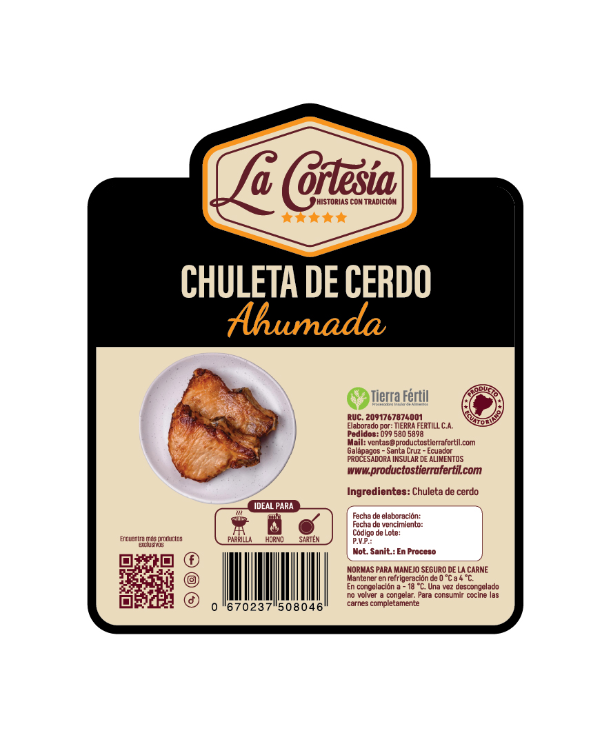 Las chuletas ahumadas son cortes de lomo de cerdo que han pasado por un proceso previo de curación y exposición al humo de maderas nobles, lo que les otorga un color rosado característico y un perfil de sabor profundo y salino. Al estar ya precocidas por el ahumado, su preparación es sumamente rápida, permitiendo que al sellarlas a la sartén o a la parrilla desarrollen una superficie dorada y caramelizada en pocos minutos. Es un ingrediente muy valorado por su practicidad y su capacidad para contrastar perfectamente con sabores dulces como la piña, la ciruela o glaseados de miel.