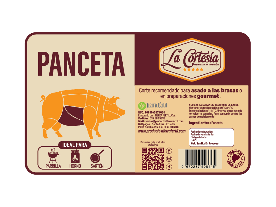 La panceta es un corte premium que proviene de la zona abdominal del cerdo, caracterizado por sus capas alternas de carne magra y grasa infiltrada que le otorgan una jugosidad y sabor incomparables. Es la pieza de donde se extrae el tocino, pero en su estado fresco permite preparaciones magistrales como la panceta al horno o a la caja china, donde se busca una cocción lenta para que la carne quede tierna mientras la piel se transforma en un «querido» chicharrón o crackling perfectamente crujiente. Su versatilidad la convierte en un ingrediente estrella de la cocina global, capaz de aportar una textura sedosa y una profundidad de sabor ahumado o salino a cualquier platillo que la incluya.